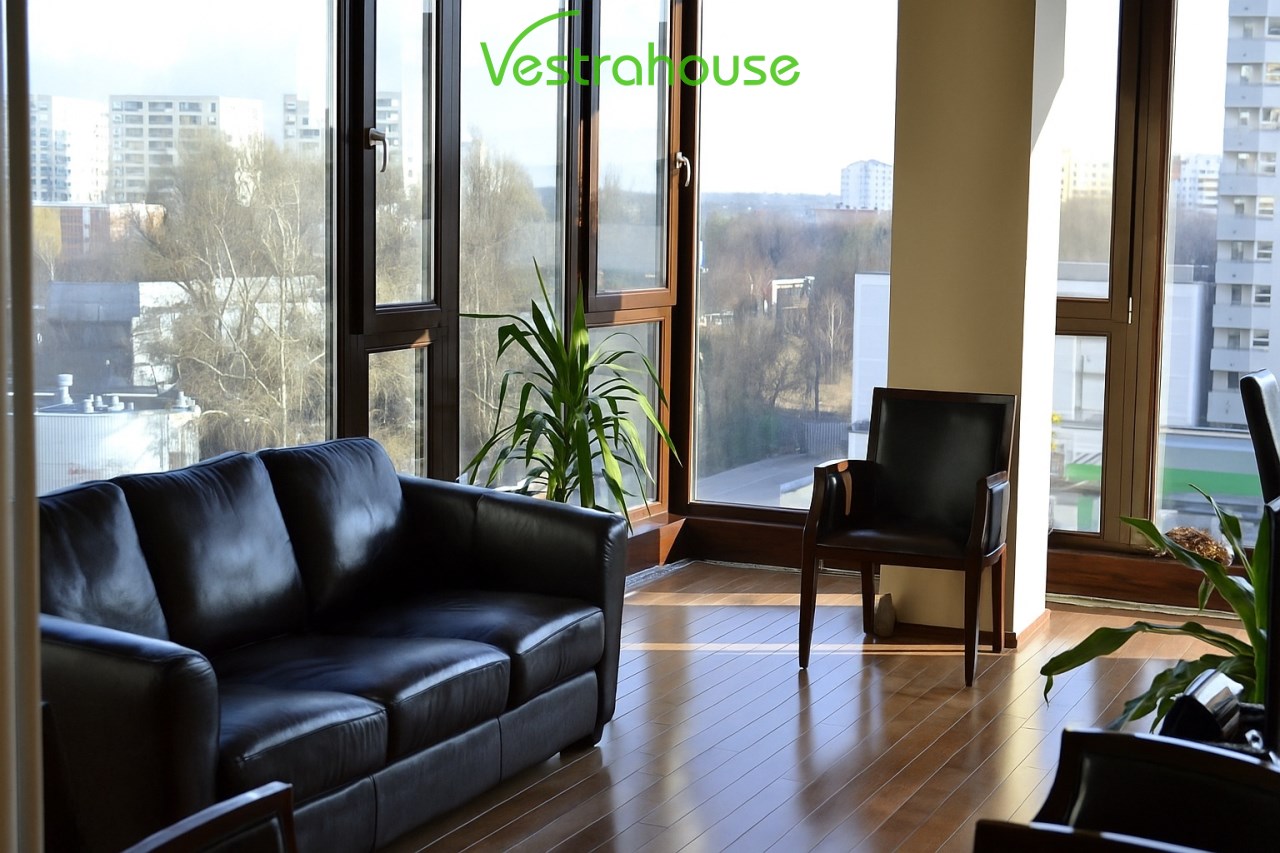 Duże okna zapewniające naturalne doświetlenie wnętrz