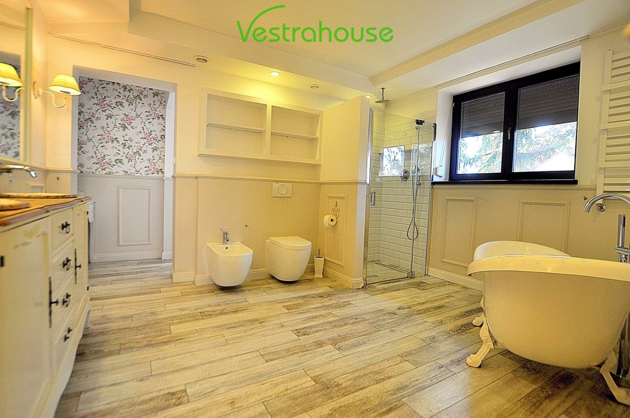 Wnętrza zostały zaprojektowane z myślą o funkcjonalności i wygodzie. Przemyślany, indywidualny rozkład pomieszczeń obejmuje 6 pokoi, w tym przestronny salon z kominkiem, kuchnię z jadalnią, sypialnie i gabinet. Zastosowanie wysokiej jakości materiałów sprawia, że dom emanuje ciepłem i elegancją. Cicha, zielona część Ursynowa – tuż przy Lesie Kabackim.